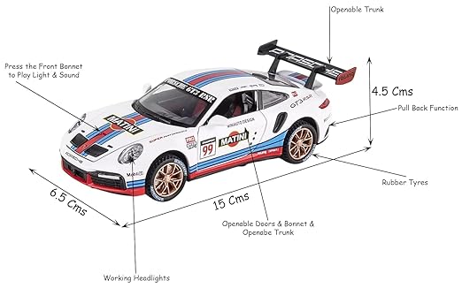 Brand Conquer 1:32 Scale Die-Cast Metal Porrsche Matini Car with Openable Doors,Pull Back Action,Blinking Lights (Matini Car)