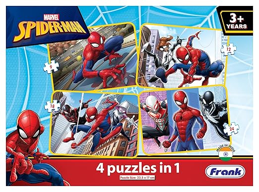 Frank Spider-Man 4 Puzzles in 1 | Set of 4 Jigsaw Puzzles, 63 Pieces Each | Fun and Challenging Brain Booster Games for Kids Age 3, 4, 5 and Above | Puzzle for Focus, Memory, and Gifts for Kids