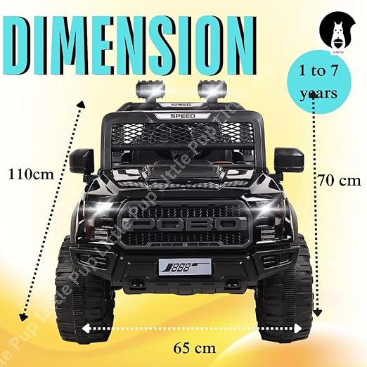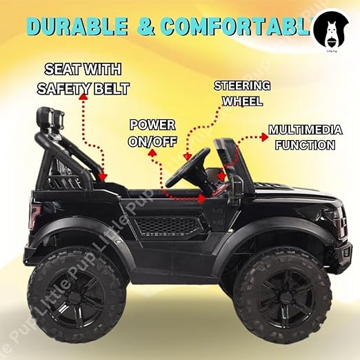 LITTLE PUP Kids Battery Operated Big Size Jeep 12V Battery Jeep Battery Operated Ride On (Dark Black)
