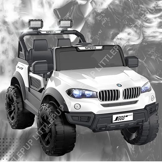 Little PUP Kids Speed-888 Battery car for Kids | Battery Operated Jeep for 1 to 7 Year | Electric Ride on-Dual Control Mode, Swing Function, Led Lights, with Seat Belts | (White)