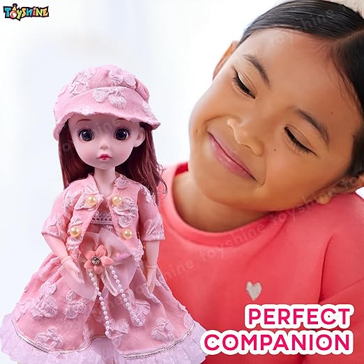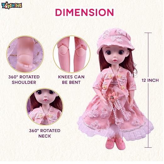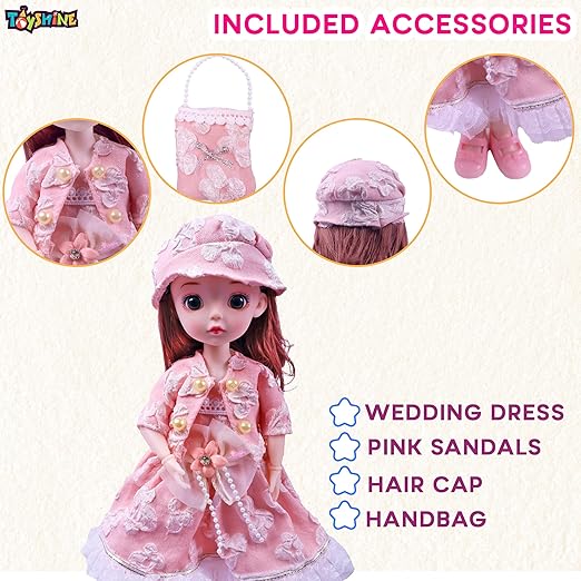 Toyshine 12 Inch Cute Doll with 3D Eyes & Beautiful Wedding Dress with Movable Joints Pretend Play Toy Birthday Gift for Age 3 Year and Above - Pink